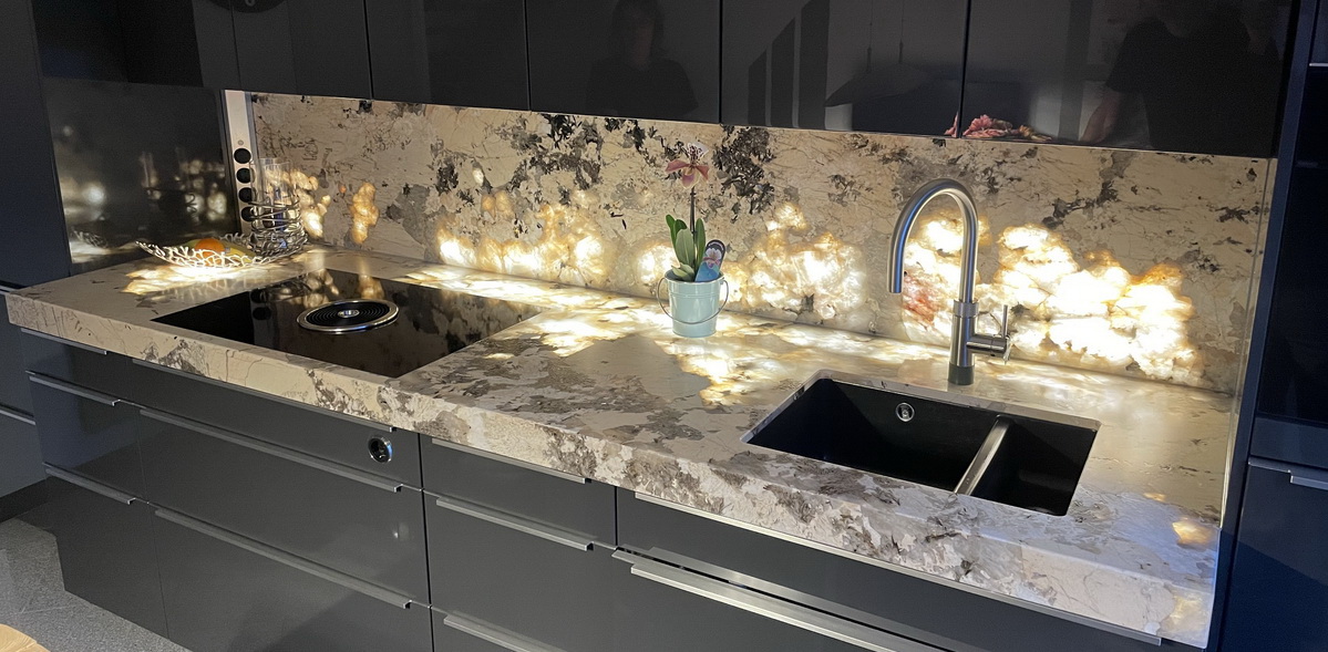 Besonders reine Minerale kamen als Edelsteine in die Juwelierläden. Erst seit kurzer Zeit gelang es durch Imprägnierung mit dünnflüssigen Epoxidharzen, die vielen natürlichen Spaltrisse in Quarz und Felspat zu schließen und damit Werksteinqualität zu erreichen. Das Resultat ist eine Hochglanzpolitur ohne jede Haarrisse, die ohne diesen Kunstgriff nicht möglich wäre. Die einzigen dunklen Minerale im vorliegenden Muster sind etwas Biotit sowie sauber begrenzte Kristalle von schwarzem Turmalin.